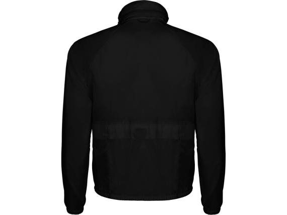 Ветровка из водонепроницаемой ткани на подкладке: *воротник с карманом для капюшоны *рукав реглан *карманы на молнии *центральная молния *карман на спинке для складывания изделия *капюшон с эластическим шнуром и пластиковыми регуляторами *дышащая ткань внутри горловины *дышащая ткань внутри кармана спинки